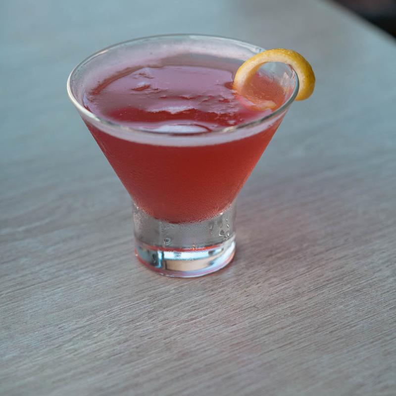 Bombay gin, Stoli Blueberry vodka, pomegranate, and lime juice; topped with a splash of lemonade.